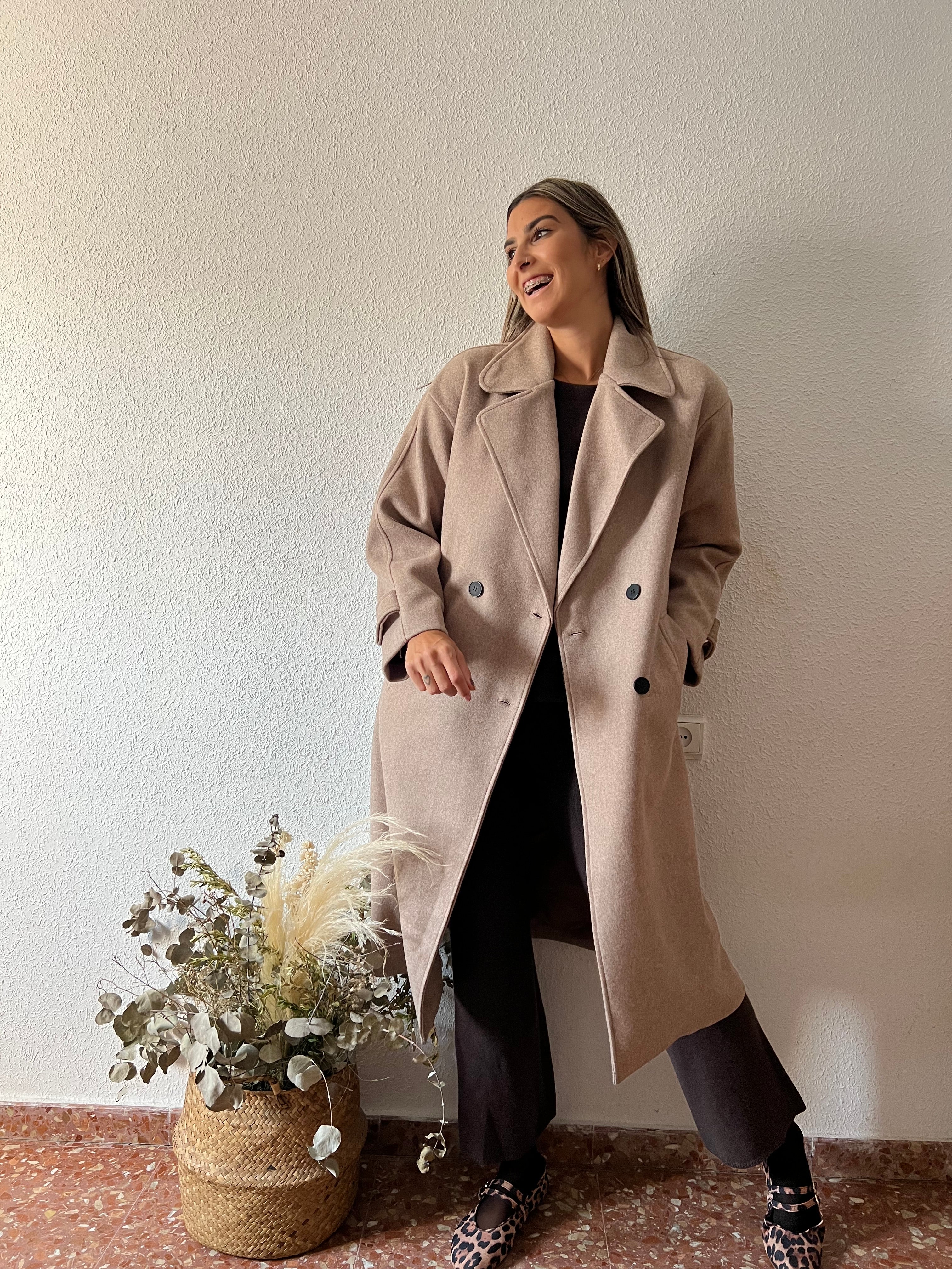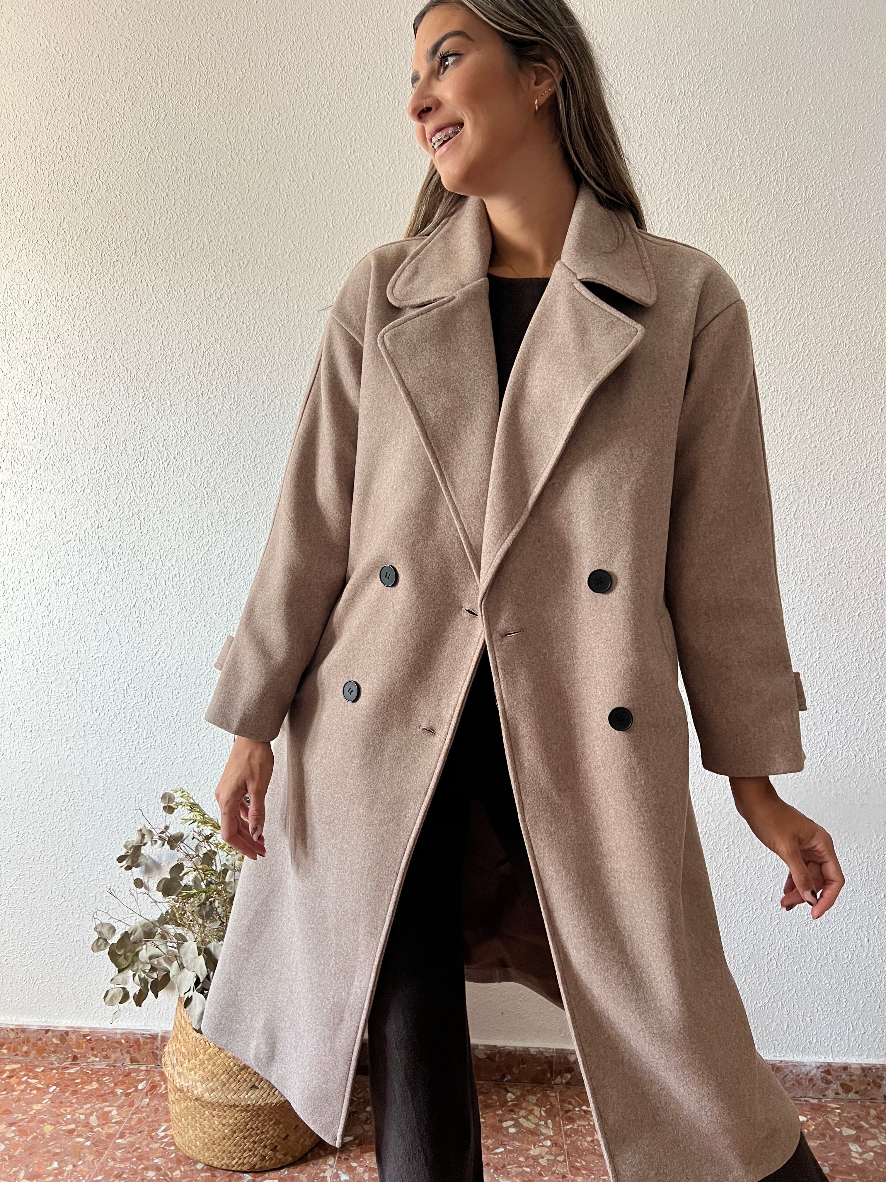 Abrigo de corte recto oversize de paño, forrado completamente.