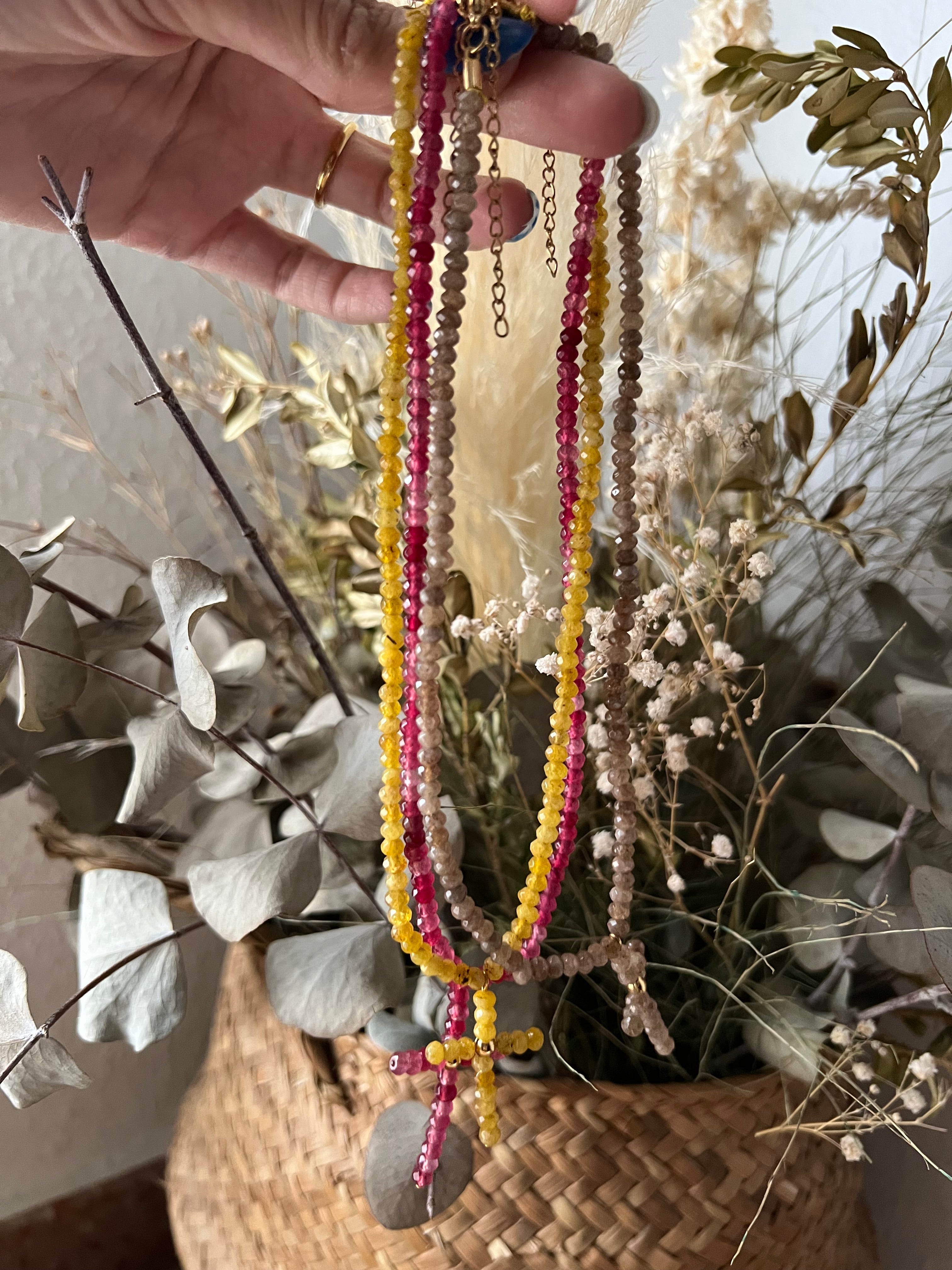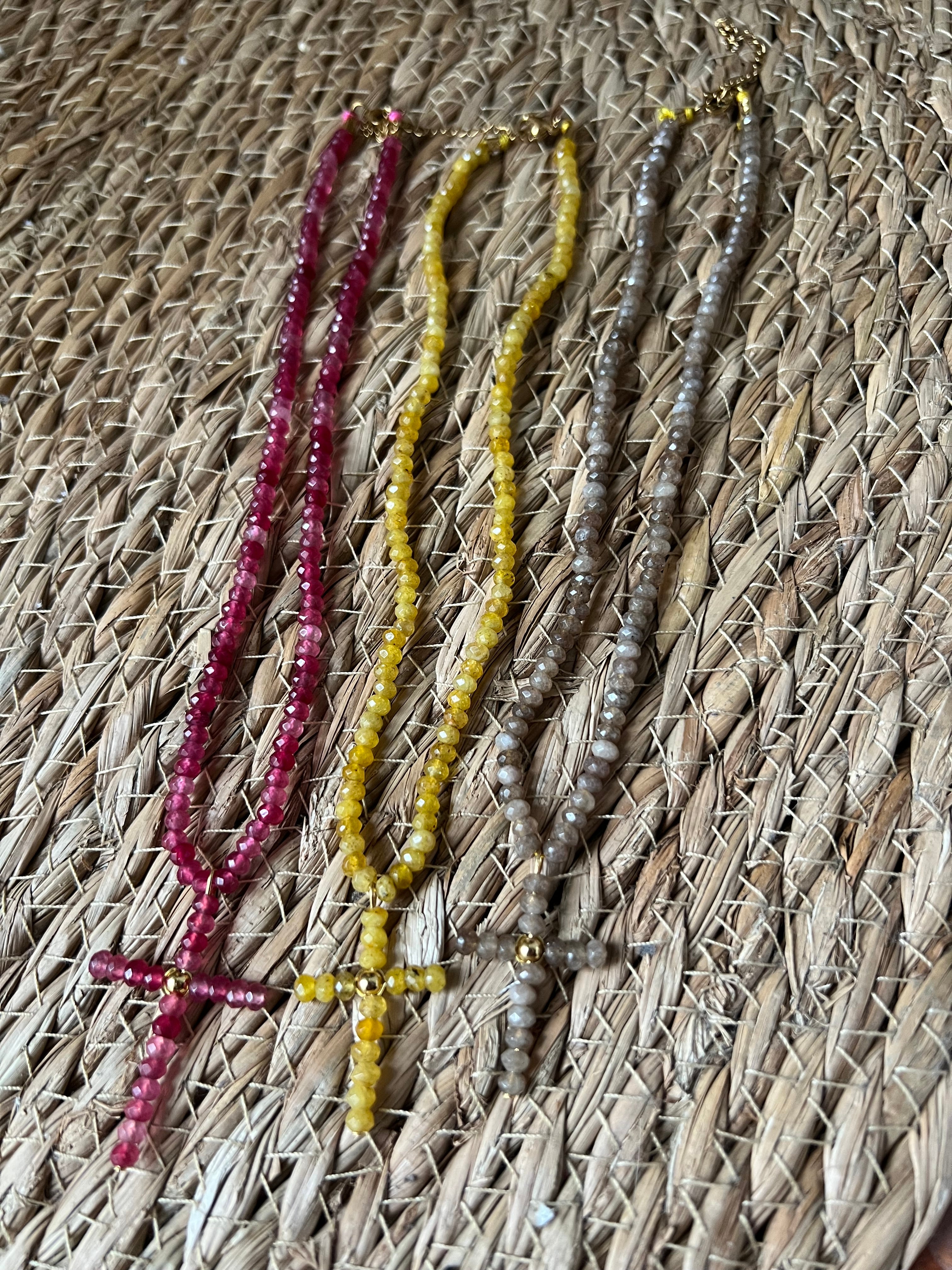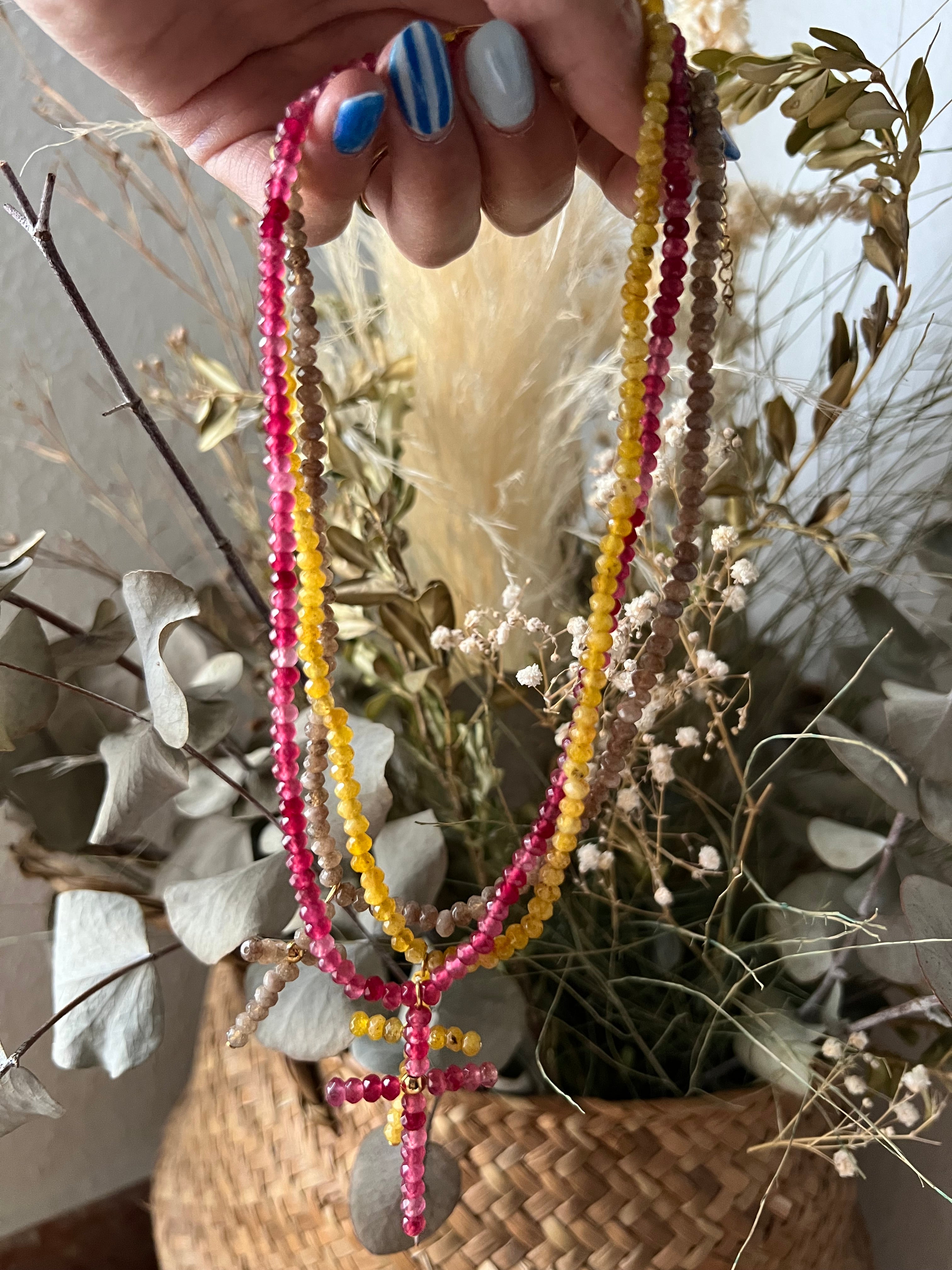 Colgante gargantilla de color con cruz.