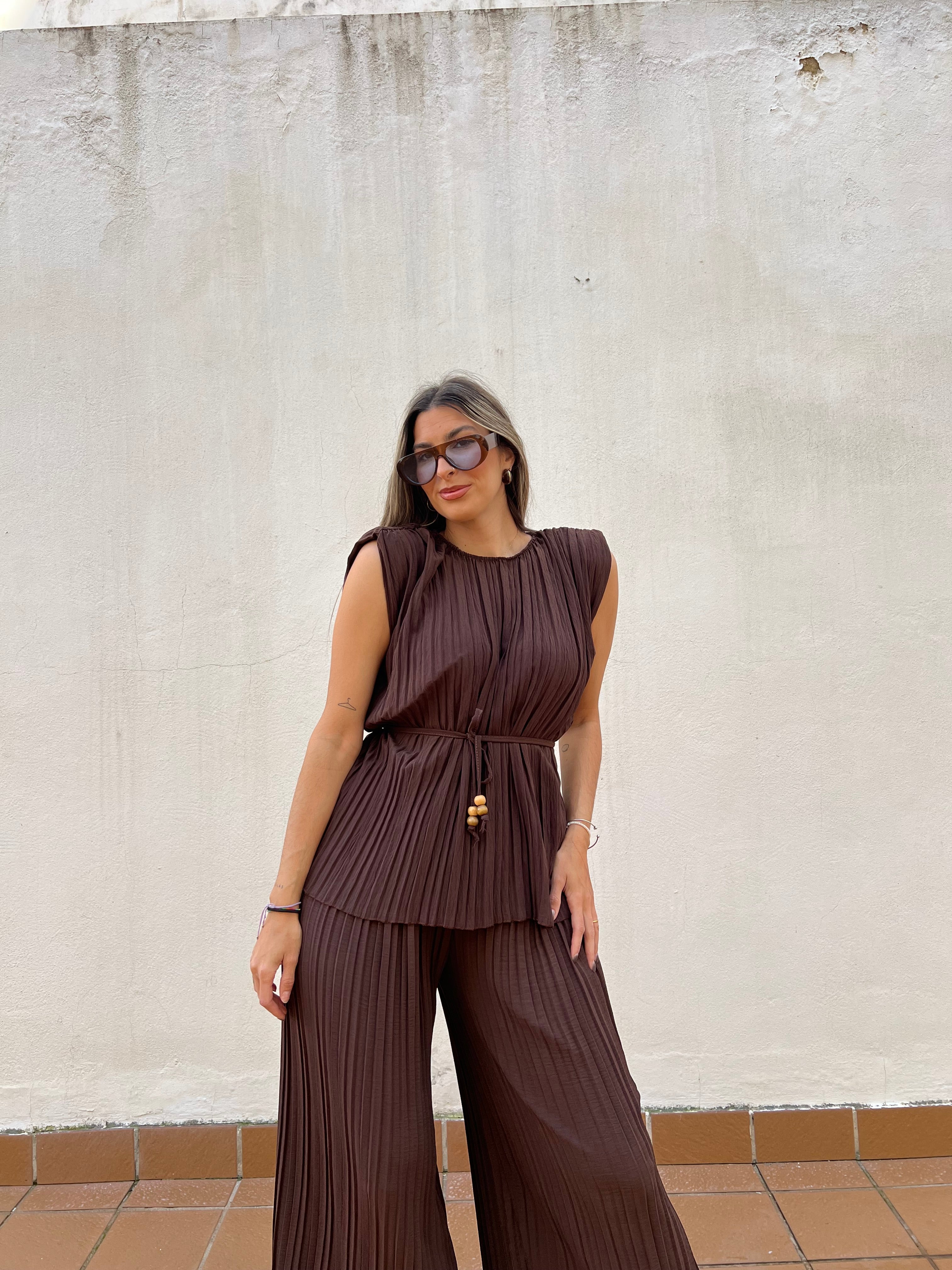 Gafas de sol con montura marrón y cristal azul.