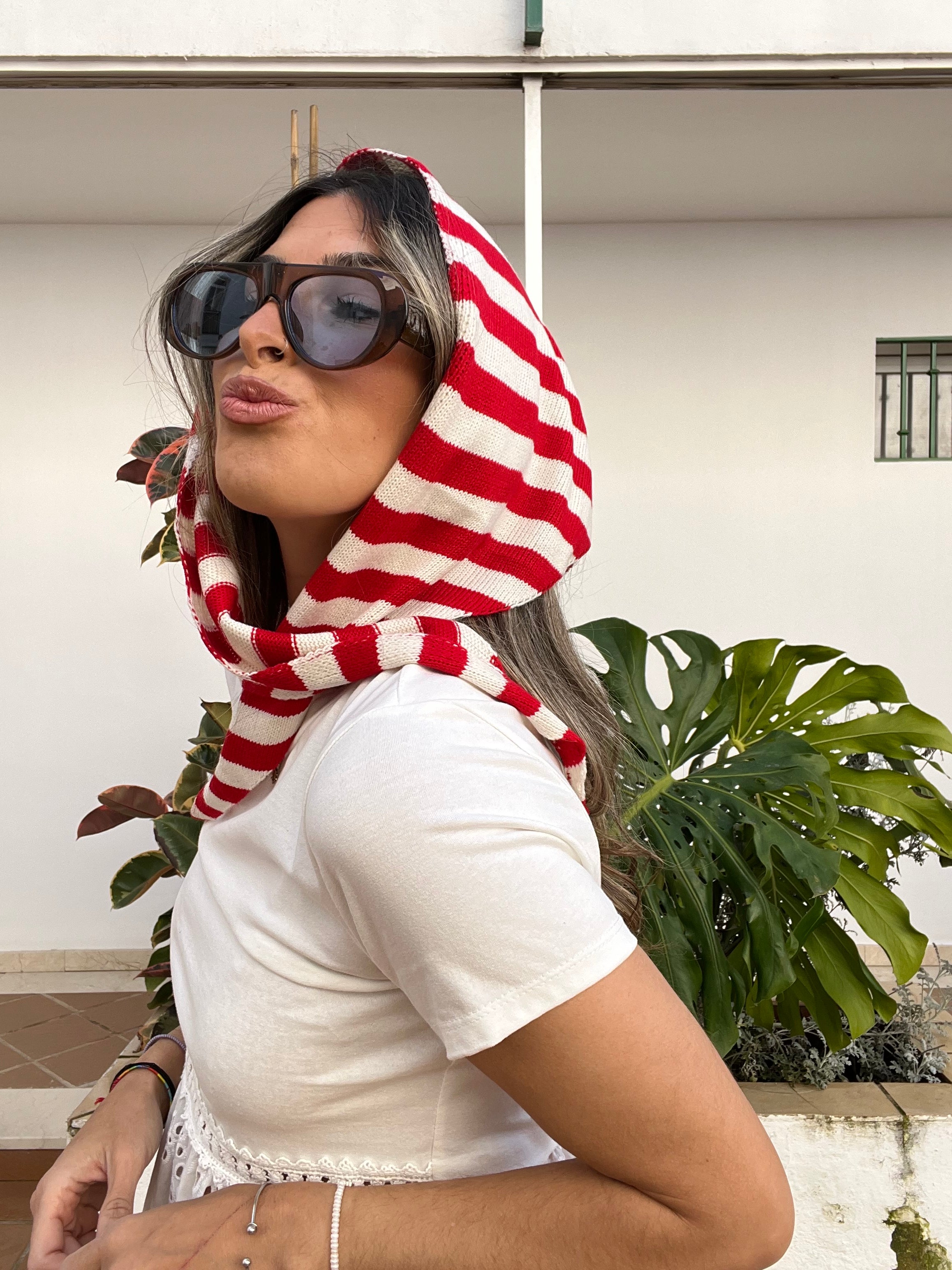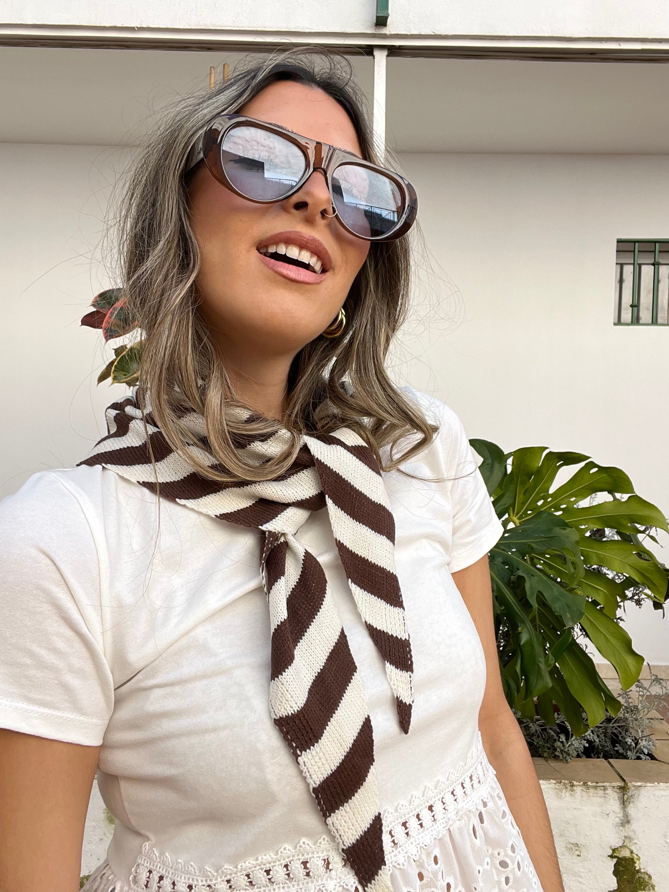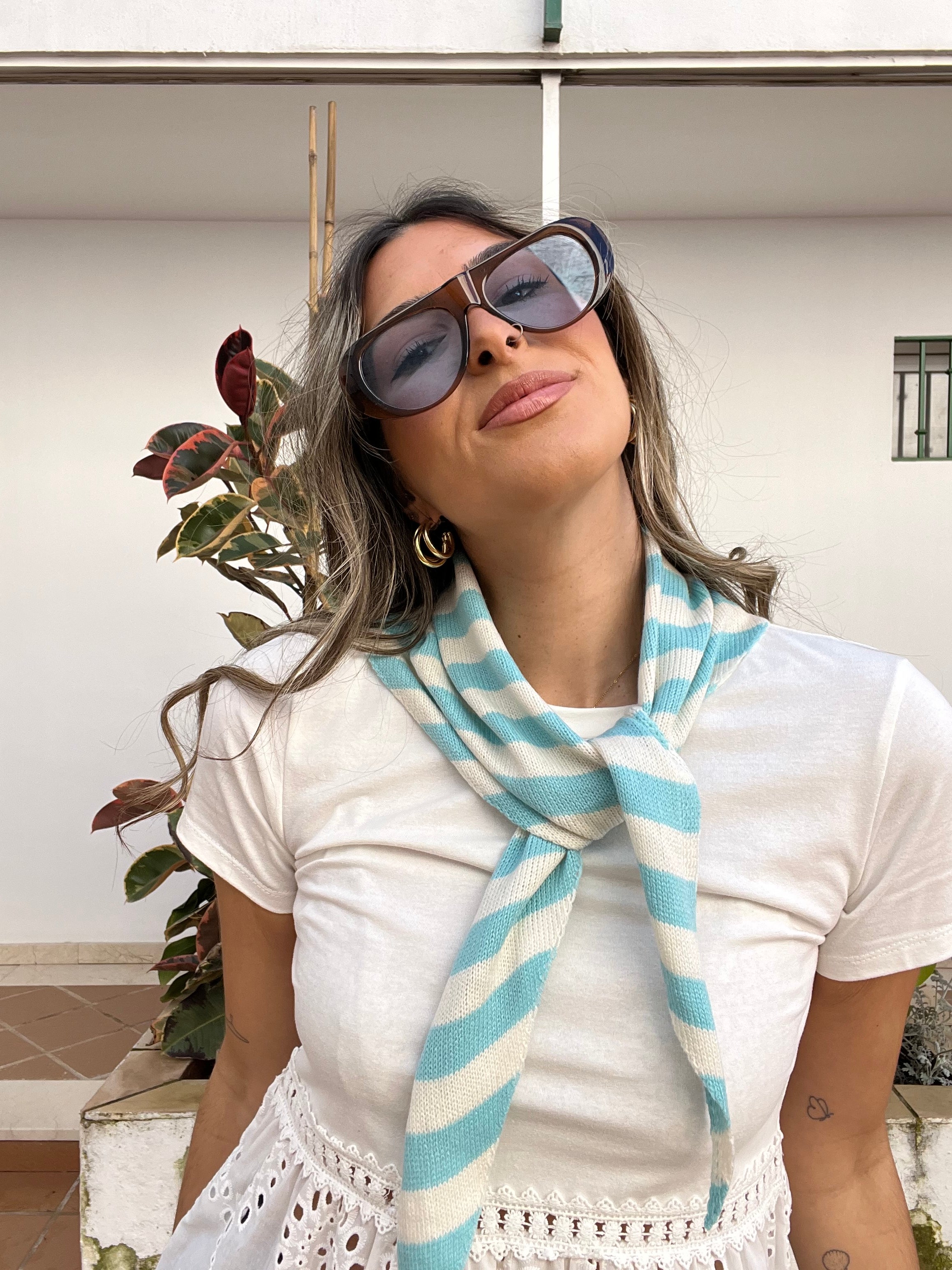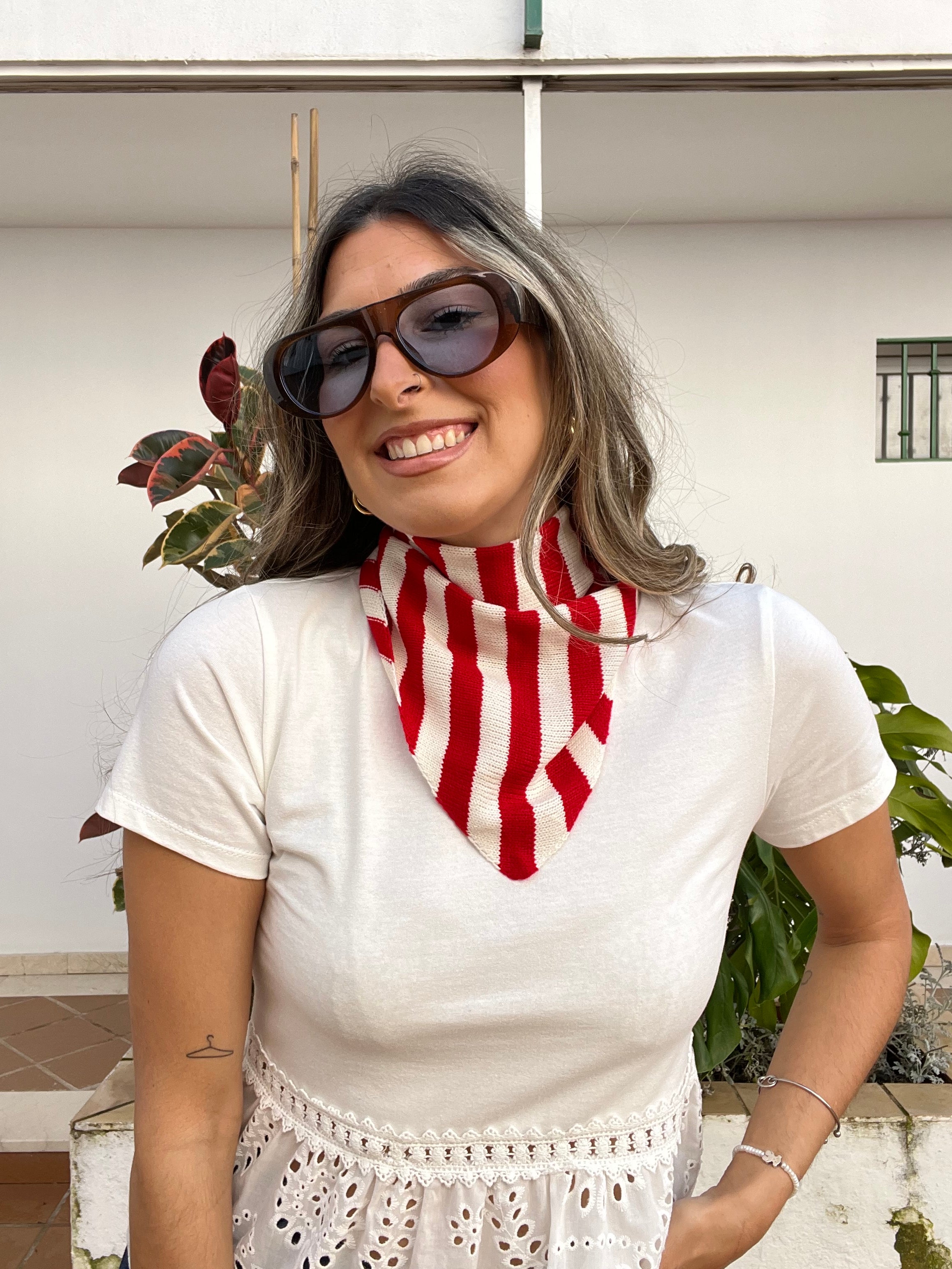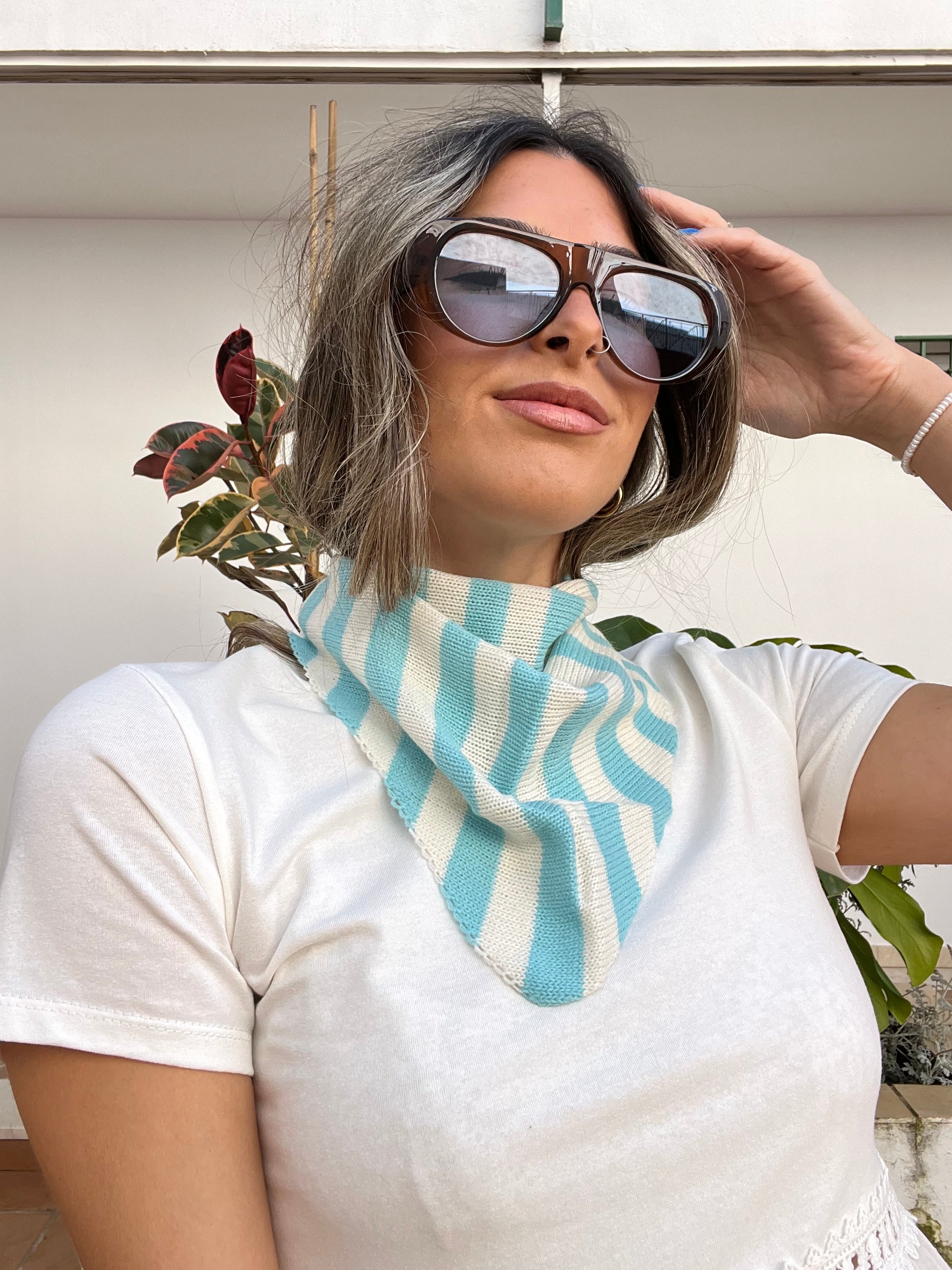 Pañuelo tipo bandana de punto estampada de rayas.