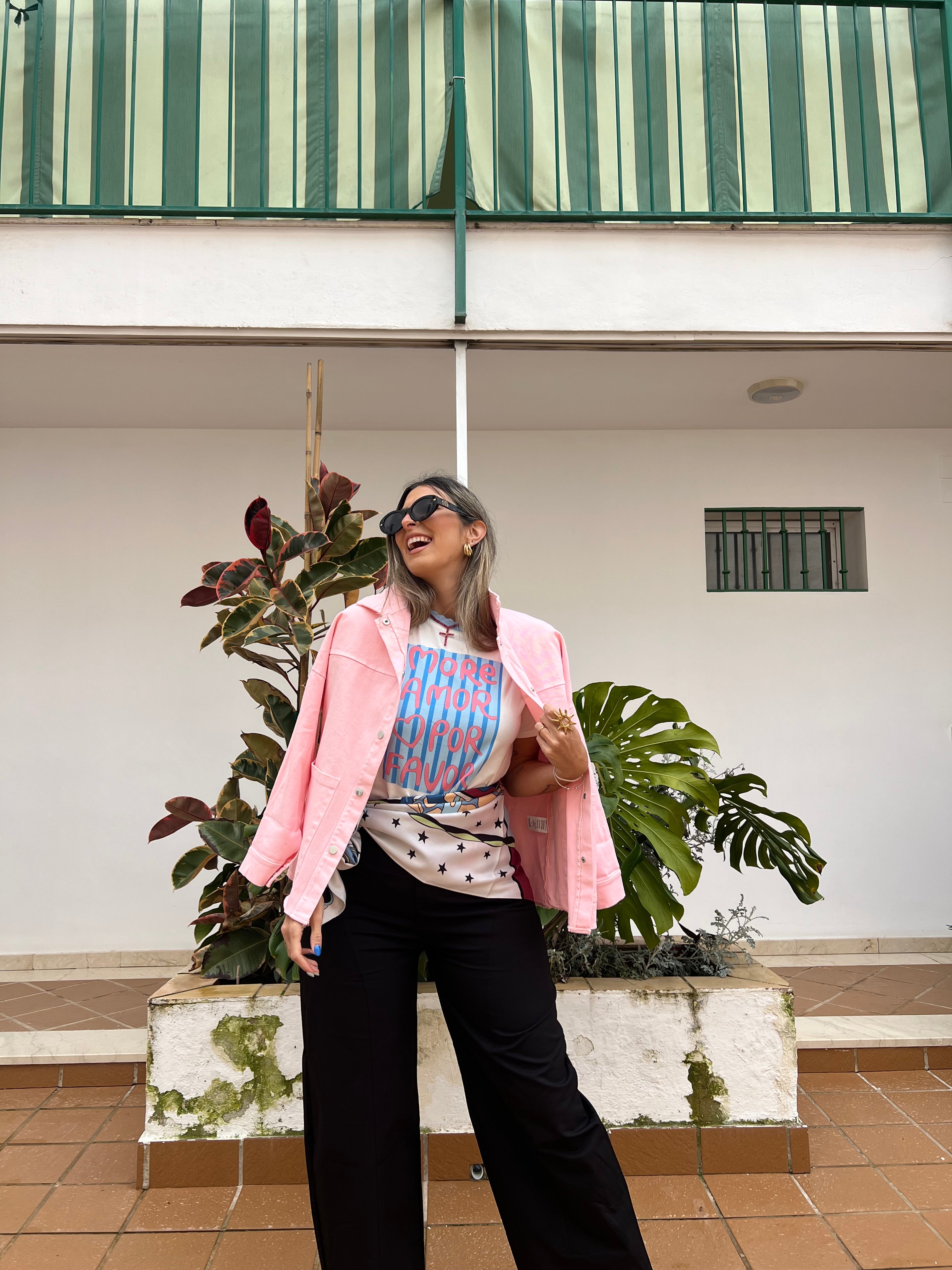 La modelo mide 174cm y usa talla 42.
