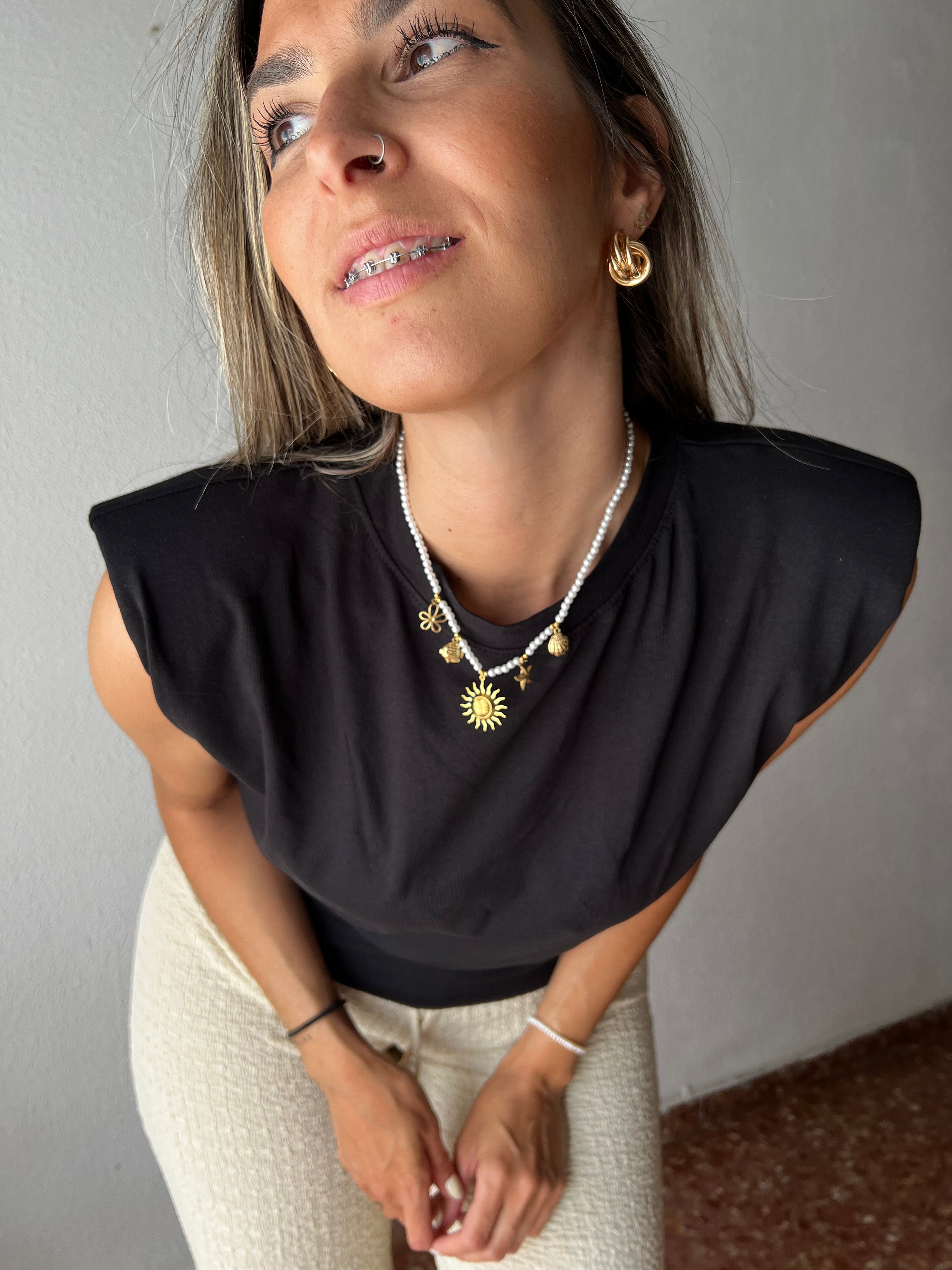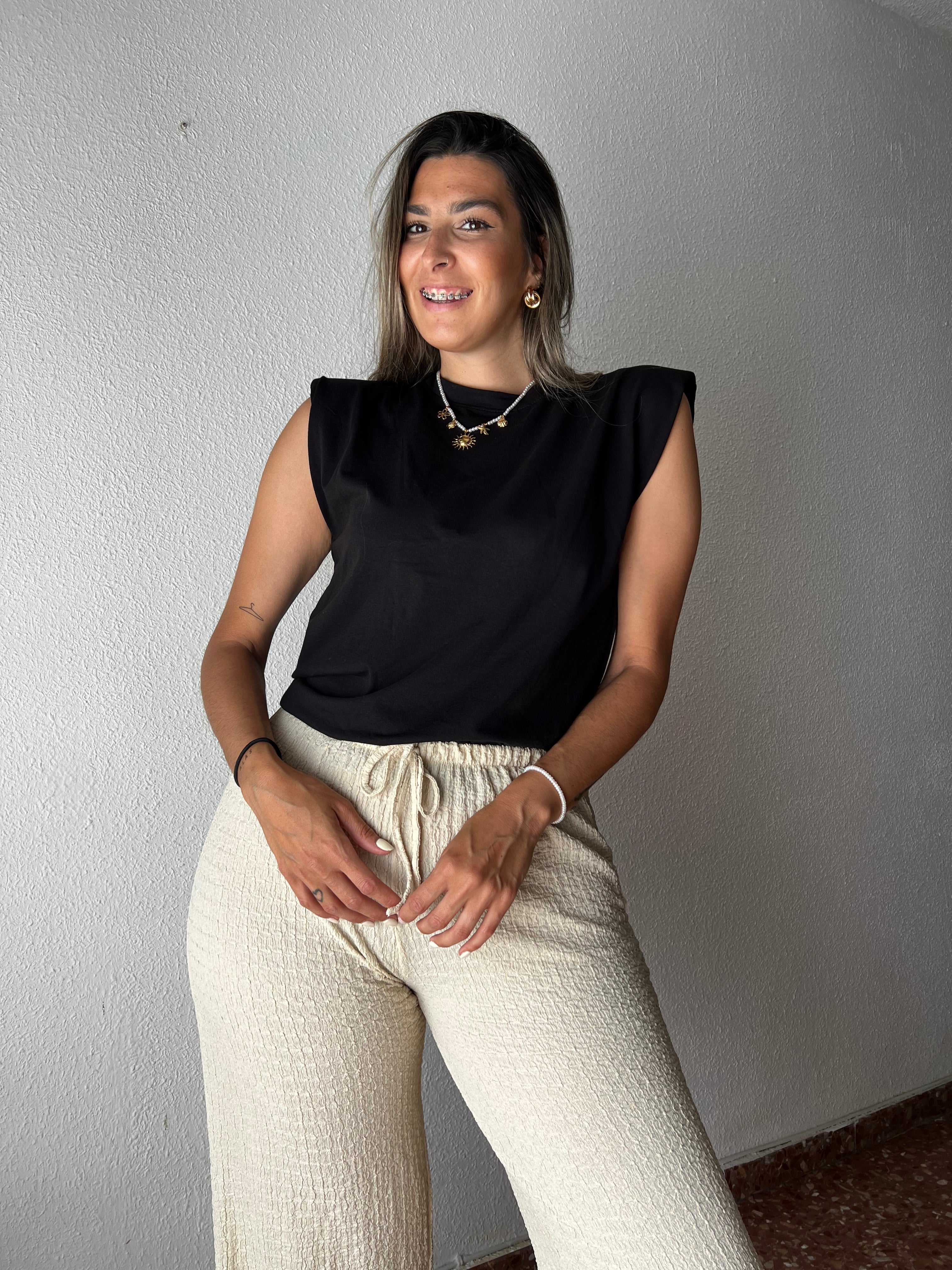 Camiseta básica con detalle de hombreras.